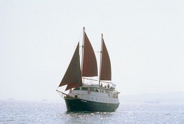 A classic motor sailer with traditionally crafted interiors. A great experience awaits you on board the casual yet comfortable, authentic Greek  Motor Sailer. There is a bar adjacent to the lounge and all interiors are fully air-conditioned. There are two ample open deck areas to enjoy the sea air, views and sun and an area with sun loungers, deck chairs and tables.