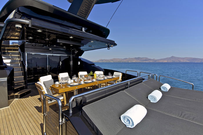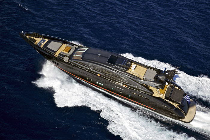 Built in 2011, this 40m yacht offers luxurious accommodation for 12 guests in 5 cabins. High Speed performance.Despite her sleek and imposing exterior, she boasts three different outer deck areas for unlimited hours of lounging…Outstanding yacht with her very impressive black hull and the very dark grey superstructure.