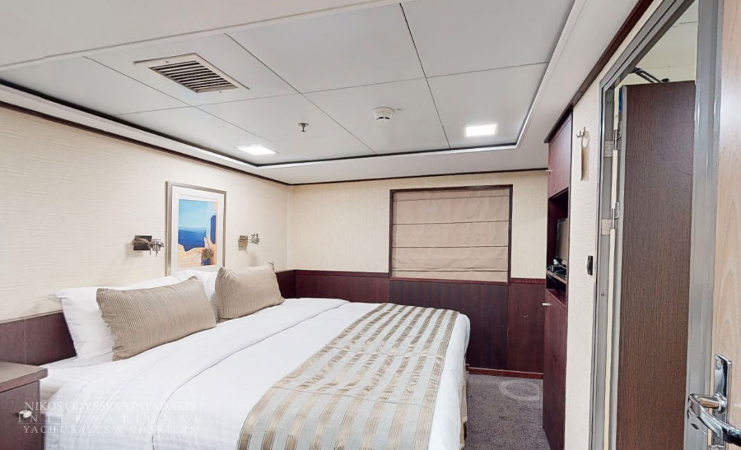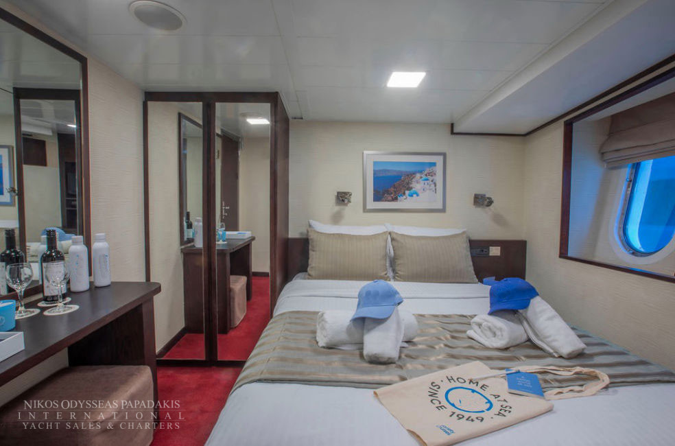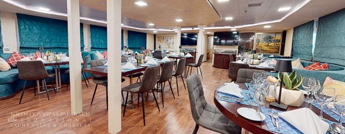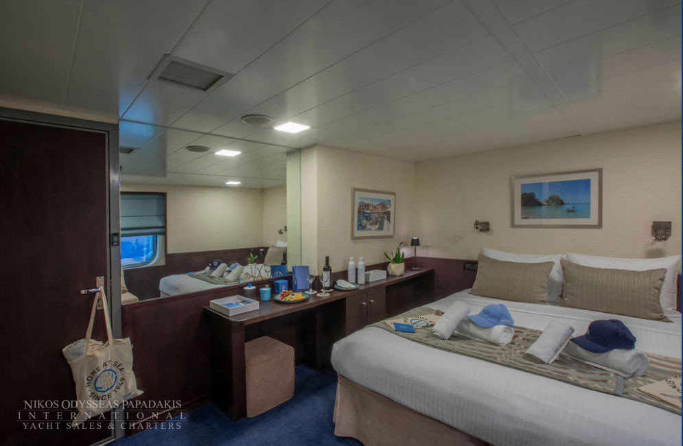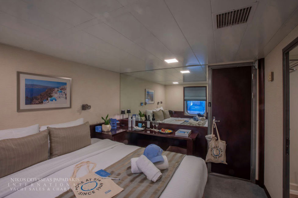 Mini Cruise Ship 55m. design allows her to navigate smaller ports and secluded coves that larger vessels cannot access, providing guests with unique opportunities to explore less-traveled destinations in the Greek Isles. Cruising speed 10 knots.