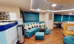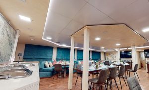 • Entertainment: The main lounge offers a cozy atmosphere with audiovisual equipment for entertainment and relaxation.