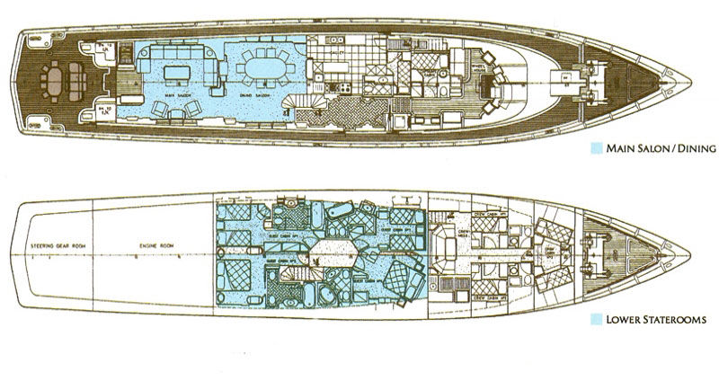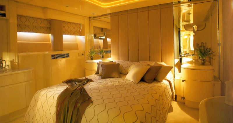 Constructed in Greece, this yacht was built to very high standards and complies with International ABS Rules and Safety requirements. The hull lines have been optimized for minimum resistance and optimun seakeeping and result in superb performance in rough seas, giving a perfectly smooth ride. She combines a sleek exterior styling with an opulent yet functional and luxurious interior, ideal for the most demanding and discerning guests. Materials that were used for decoration include: marble, leather, silk, hand made jewel colored stained glass, bamboo, wide mirrors and precious works of art that reflect her utmost luxury. The excellent crew of eight on this quiet well equipped motor yacht completes the picture. She accommodates ten guests in five super luxurious staterooms.