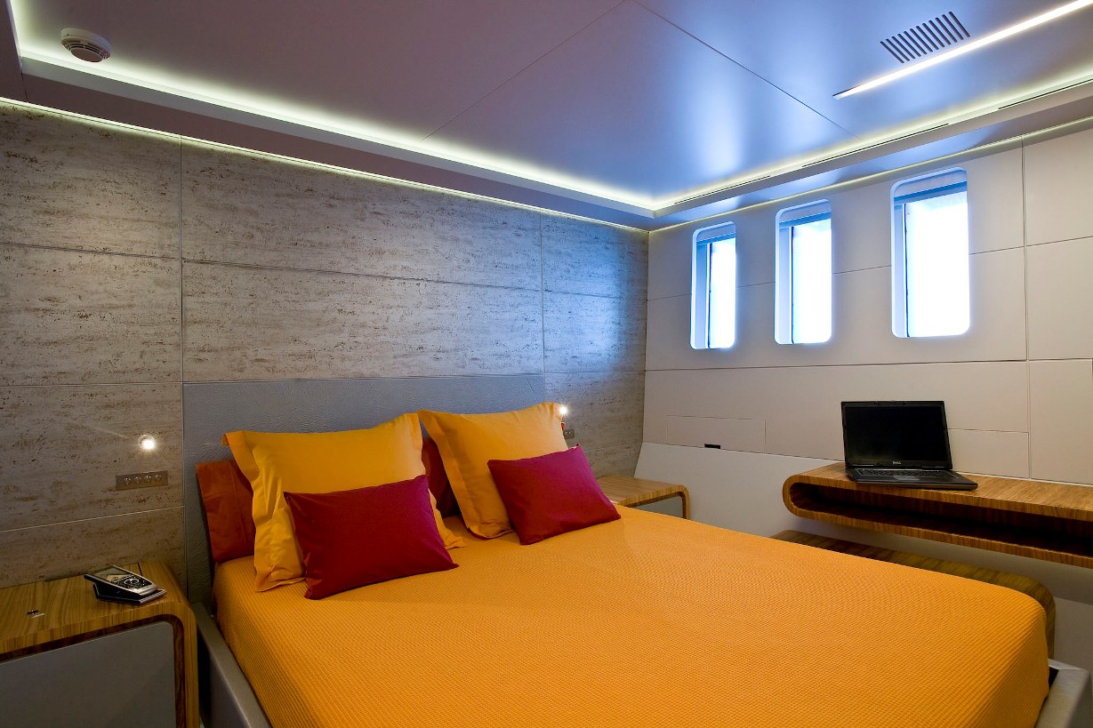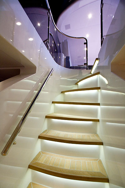 A 42 m Mondomarine luxury motor yacht built 2007 and launched in 2008. Her hull is semi displacement and built of aluminium and she has a striking and contemporary Italian interior and exterior design along with a deck Jacuzzi pool and excellent outdoor space. Mondomarine have produced a powerful and yet beautiful motor yacht with aggressive yet sweeping lines. Despite this yacht’s ample size and luxury she retains a ‘sports yacht’ look and feel. She also utilised clean and functional modernistic interior styling.