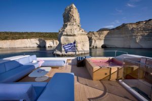 The charterer will be charged extra, at cost to the yacht, for all other expenses. These include fuel* for the yacht, fuel for the ski-boats or other tenders, food*, wine, beers, spirits and soft drinks for the Charterers (at retail super market prices), VAT (in Greece 11.5%) of the total yacht charter fee , other consumable stores, berthing dues and other harbor charges away from the yacht’s own berth, Corinth canal fees (if any), Private marine fees (if any), including pilotage fees and chargers for water and/or electricity taken from the shore, laundry, communications, hire costs of special equipment placed on board at the request of the Charterer, Gratuities for the crew.