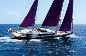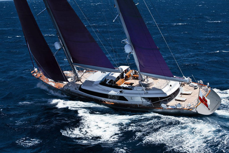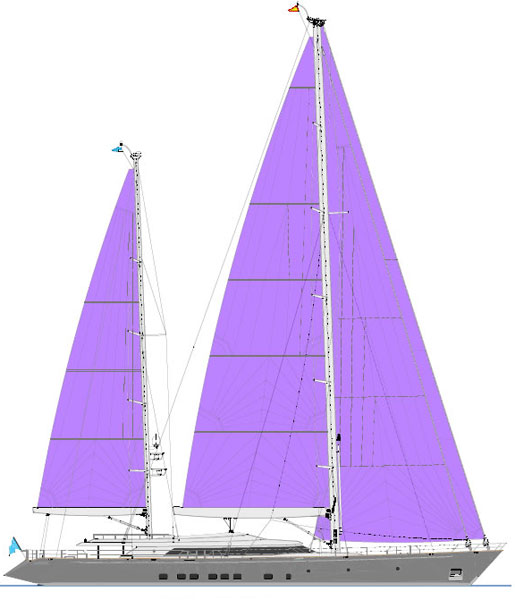- A state-of-the-art sailing system with aluminum, ketch rigged masts that are 56.7 and 42.9 meters from the DWL. Perini also designed, engineered and manufactured the carbon fibre electric in-boom furling system and the captive reel winches that handle a sail plan of 1,418 square meters, which consists of the main and mizzen sails plus genoa and blade jib.
