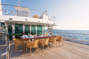 The yacht charter fee includes the charter of the yacht with all its tools, stores, cleaning material and basic consumable stores for engine room, deck and cabins, etc., the crew’s wages, food and the insurance of the yacht for marine risk and third party claims and the crew for employer’s liability insurance, water and ship’s laundry.