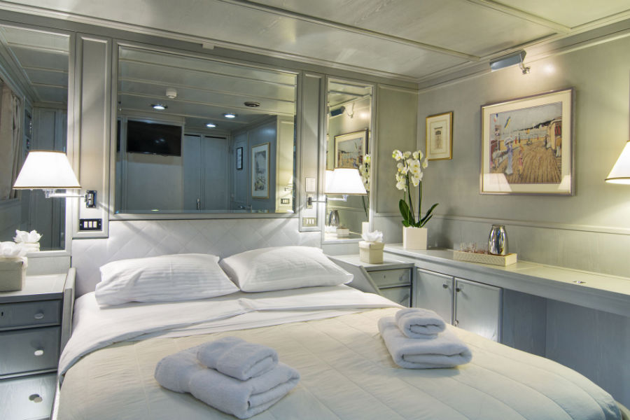 Luxury accommodation in seven cabins. Upper salon offers panoramic view, bar and dance floor. Generous sun deck space. Top level crew