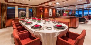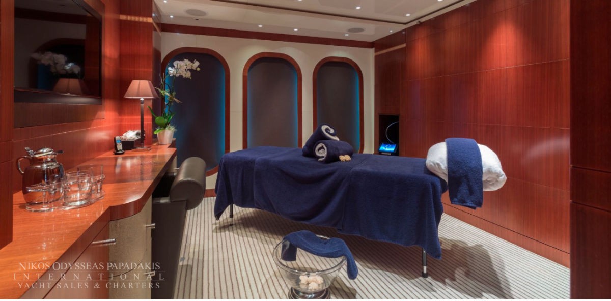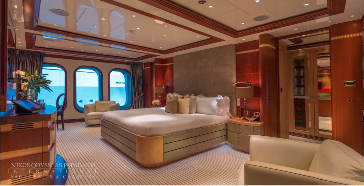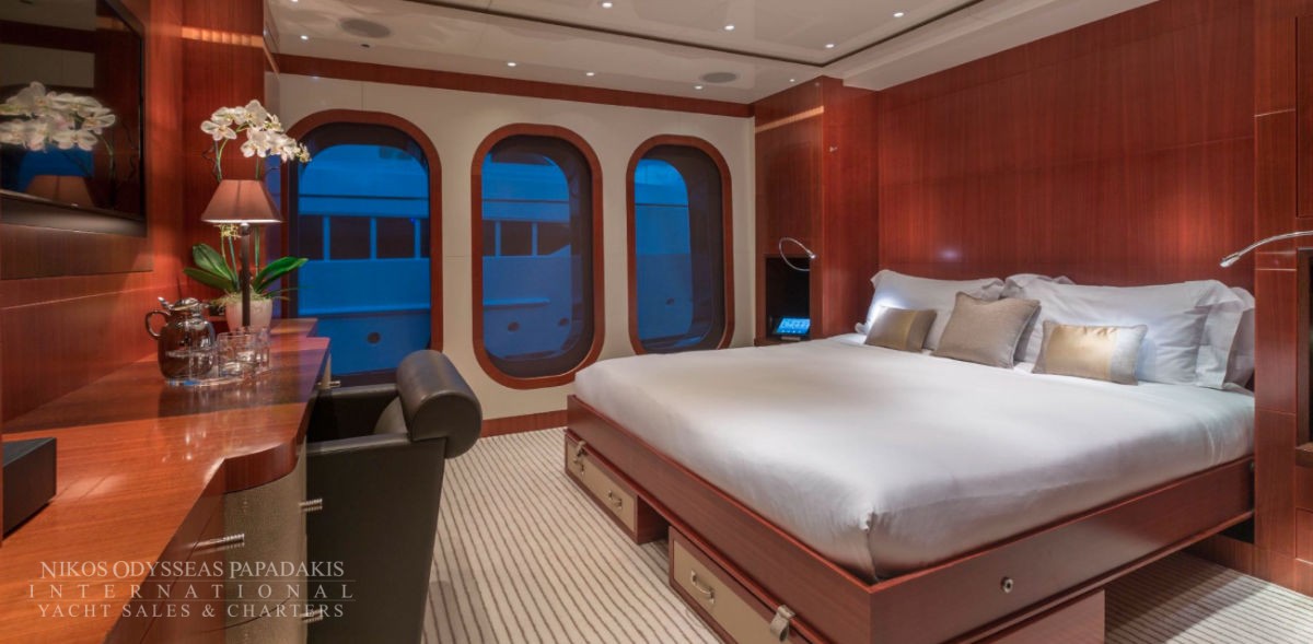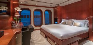 Accommodation includes the large full beam master, VIP suite, two doubles and two twins. The master suite’s many features include a vast walk in wardrobe, his and hers bathrooms, a private office, and floor to ceiling windows that provide breathtaking views. Both the master and VIP are located in prime position on the main deck, and their close proximity is well suited to family groups wanting to be close together.