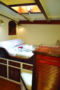 Forward on starboard there’s the VIP guest cabin with a queen size bed and a spacious bathroom.