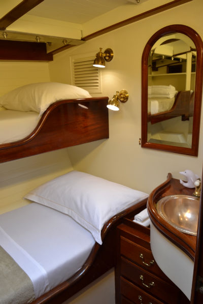 - ACCOMMODATIONS: 8 guests in 4 staterooms, 4 crew in 2 cabins