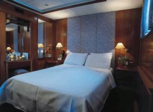 - Cabins on Upper deck (windows): 1 Double or 2 Lower Beds. The cabins are air-conditioned and fitted with central music, internal telephone, safe deposit boxes, hair dryer & en suite bathroom with shower.