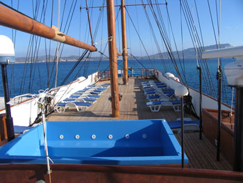 - The spacious Sun Deck is equipped with Sun Beds, deckchairs, shaded areas and a large JACUZZI which is the ideal place to bask under the sun, read a good book or just gaze at the scenery.