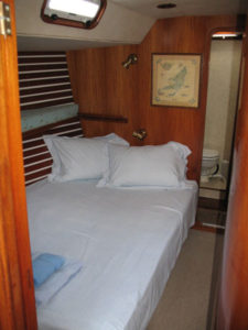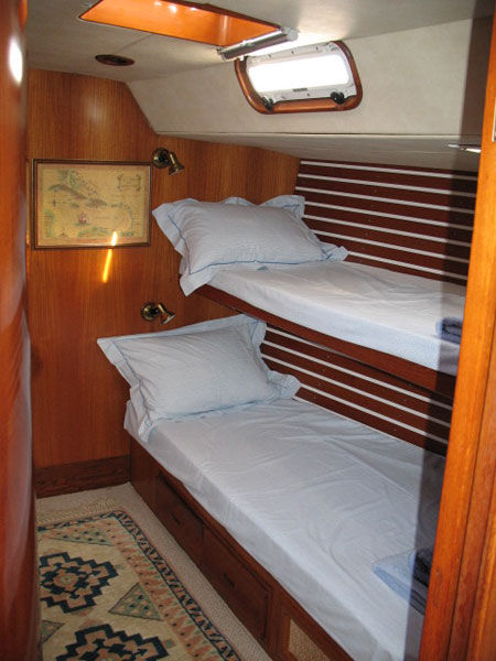 - Two additional guest staterooms forward of the mid-ship salon. Each stateroom has private facilities. The bedding for each stateroom may be modified as large lower doubles or traditional upper and lower berths depending on need. Each stateroom has a private wardrobe and drawer storage.