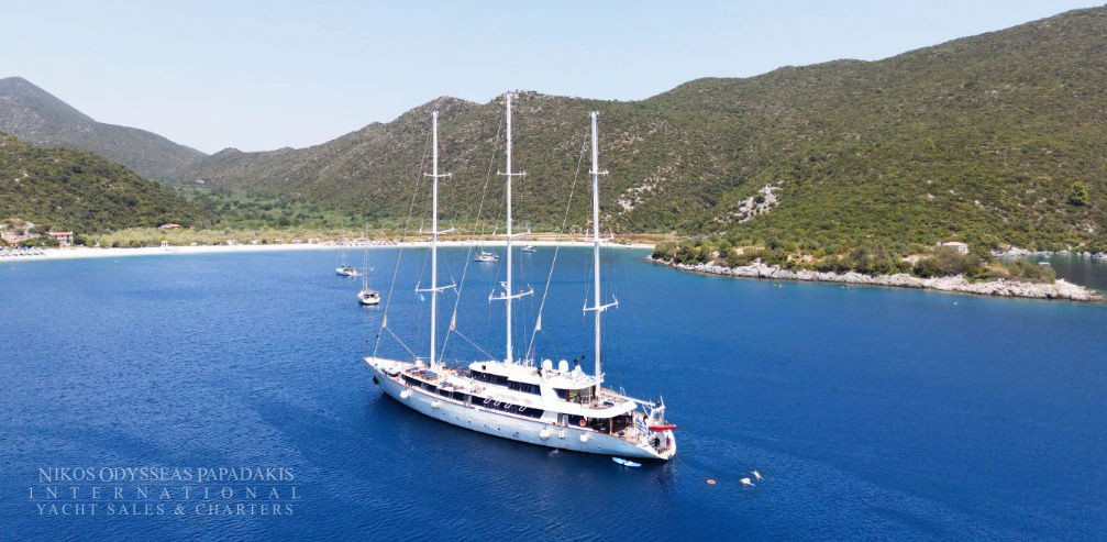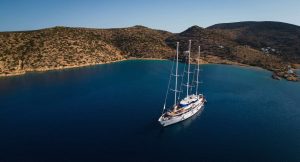 Three Masted Steel Sail Cruiser 54m for charter in Greece and the Mediterranean Sea. Discover a 3 masted sail cruiser featuring accommodation up to 49 passengers in 25 cabins. The elegant vessel provides you with the perfect passage in style and privacy, mastering the sea en route to alluring ports of call you dream about. The Three Masted Steel Sail Cruiser 54m takes you from the sparkling waters of the Mediterranean to the beautiful beaches and lazy lagoons of the Caribbean. The 54 meter sailing yacht sets a new standard for sailing-cruises. She was launched in 1993 and was renovated in 2009. This state of the art sail cruiser has performed several Atlantic Ocean crossings and has sailed from the Seychelles to Monte Carlo and from the Black Sea to Tunis and offers the highest standard of accommodation and comfort safety.