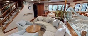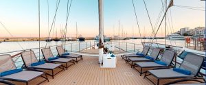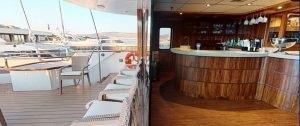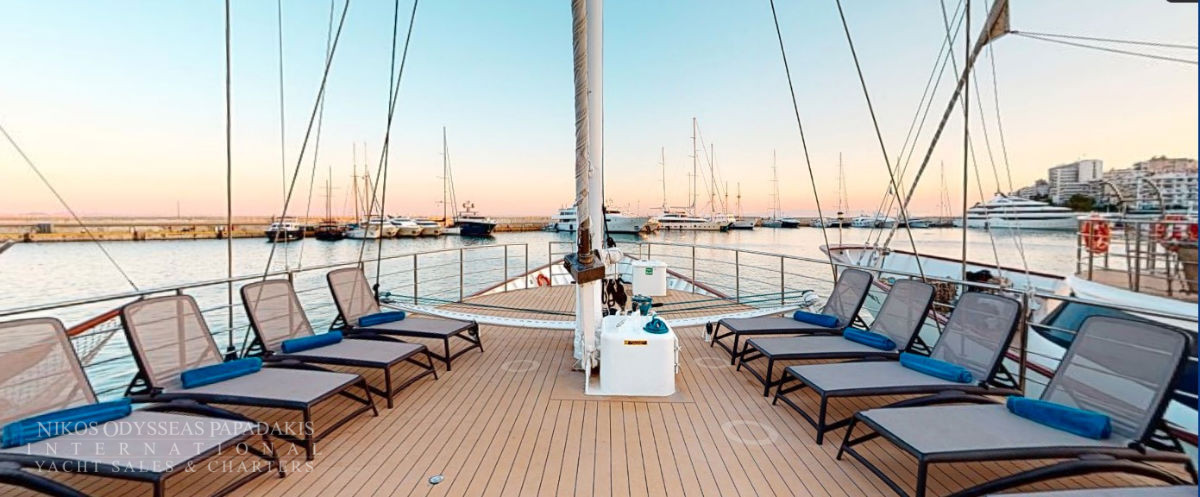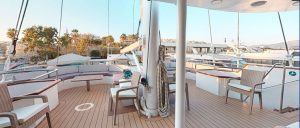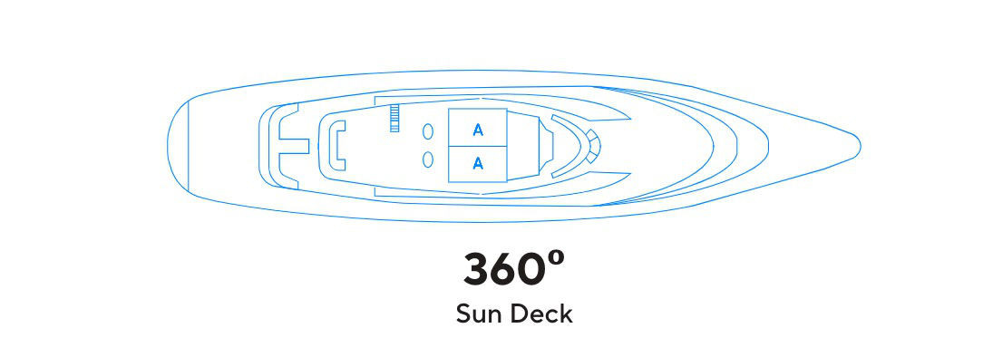 - During the day, life on board centers around the outdoor areas, the sun deck and the shaded exterior deck on the aft of the yacht.