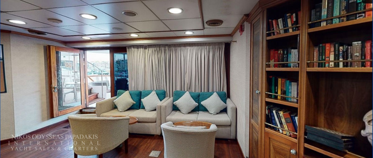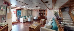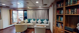 - The Lounge is situated on the main deck and has a library where you can enjoy a book and look through the floor to roof windows.