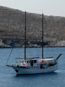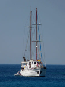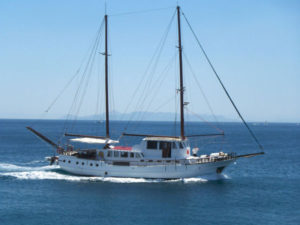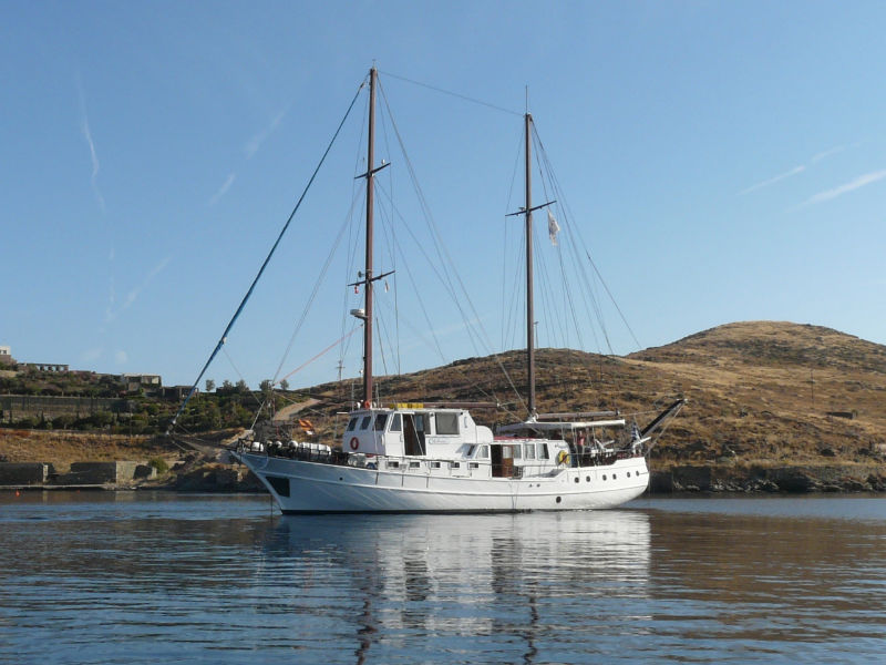 A traditional schooner refurnished in 2008 with an increasing popularity amongst charterers. She is exceptionally popular among those who enjoy leisure sailing and simultaneously require modern facilities below decks. Entering from the stern there is a lovely aft deck with ample space for lounging or al fresco dining. There is also a fully tended outdoor bar. Inside there is a lounge and dining area where all sixteen guests enjoy delightful meals. Mahogany wood predominates the atmosphere and perfectly matches the tasteful upholstery. Apart from sunbathing in the cushioned fore deck, guests will enjoy excellent service from a crew of five. There is ample room for sunbathing on the cushioned fore deck and guests can also enjoy numerous water sport facilities.