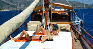 The charterer will be charged extra, at cost to the yacht, for all other expenses. These include fuel* for the yacht, fuel for the ski-boats or other tenders, food*, wine, beers, spirits and soft drinks for the Charterers (at retail super market prices), VAT (in Greece 11.5%) of the total yacht charter fee , other consumable stores, berthing dues and other harbor charges away from the yacht’s own berth, Corinth canal fees (if any), Private marine fees (if any), including pilotage fees and chargers for water and/or electricity taken from the shore, laundry, communications, hire costs of special equipment placed on board at the request of the Charterer, Gratuities for the crew.