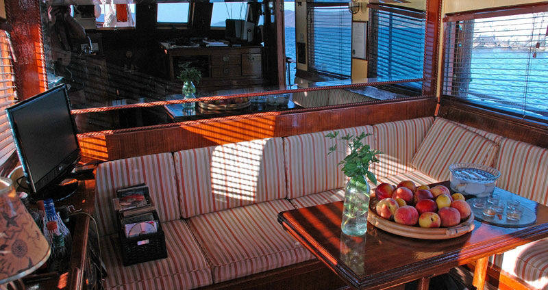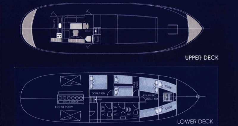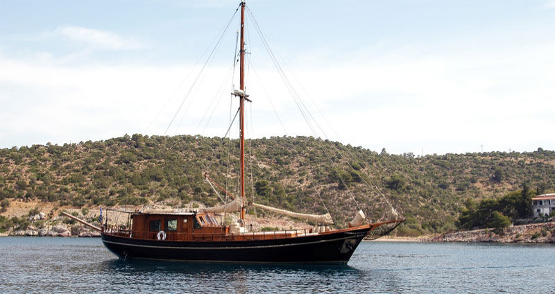 Traditional wooden motor sailer of the Liberty style designed to cruise smoothly and safely. Her deck is ideal for endless hours of sunbathing, dining and relaxing. She is equipped with modern navigation equipment and provides utmost safety and security. Aboard her guests can also participate in recreational activities such as snorkeling, skeet shooting and jet skiing or lounging in the saloon while watching TV or listening to music. She accommodates 8 guests in 3 spacious cabins with en suite facilities and autonomous air condition.