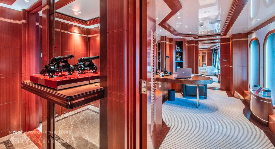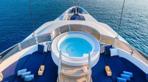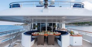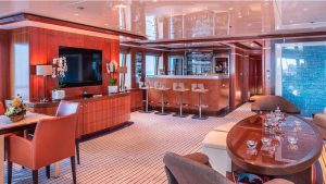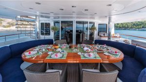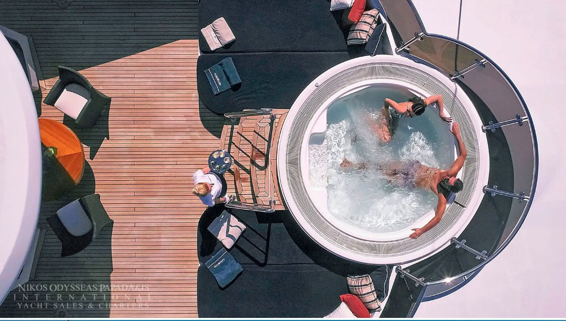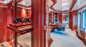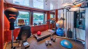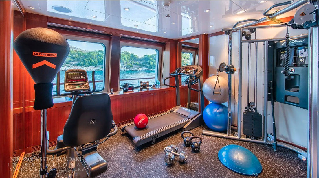 Accommodation includes the large full beam master, VIP suite, two doubles and two twins. The perfect entertainers yacht, she boasts ample spaces across every deck. Active guests can enjoy a work out with a view in her fully-equipped gym, while water lovers can take their pick from a packed water toy inventory.