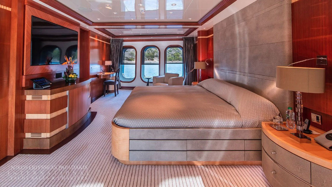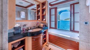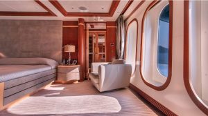 • Accommodation includes the large full beam master, VIP suite, two doubles and two twins.