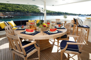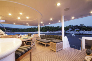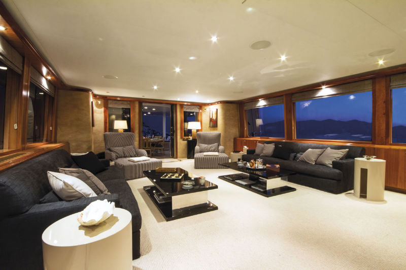 The yacht’s quiet acoustics while cruising are sure to impress along with the panoramic views from the extra large windows of the main salon, sky lounge and master cabin.