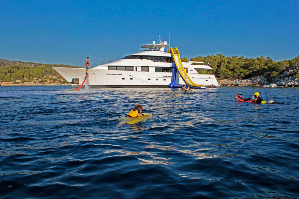 The yacht charter fee includes the charter of the yacht with all its tools, stores, cleaning material and basic consumable stores for engine room, deck and cabins, etc., the crew’s wages, food and the insurance of the yacht for marine risk and third party claims and the crew for employer’s liability insurance, water and ship’s laundry.