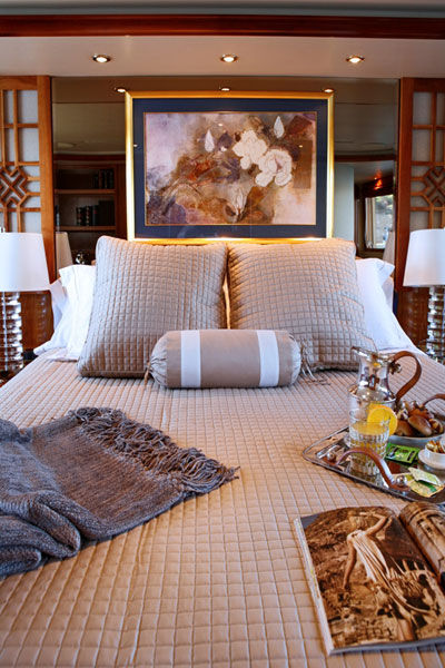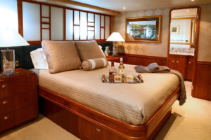 • Master Stateroom:    Full width mid-ship on lower deck. Centerline king bed. Separate “His” and “Her” bath entry.