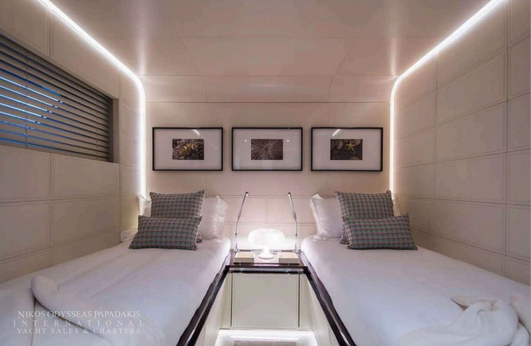 - On the lower deck you will find 4 guest staterooms. 2 VIP doubles, 1 double and 1 fixed twin, all en-suite.