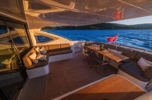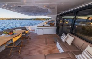 Sleek exterior lines and expansive deck areas for sunbathing and relaxation