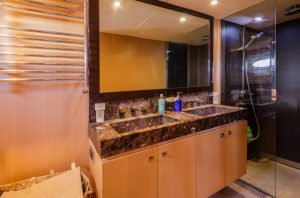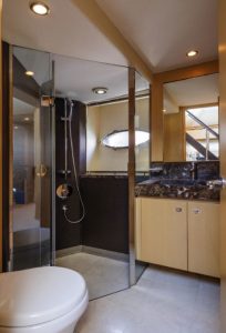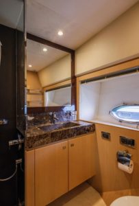 • All bathrooms feature opening portholes, fresh water Vacuflush toilets with holding tank and 240v shaver points