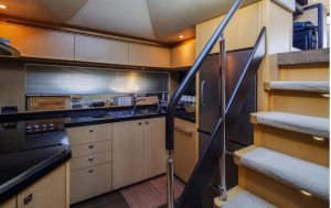 • Cockpit wetbar with sink, top loading coolbox and electric barbecue
