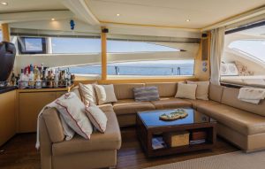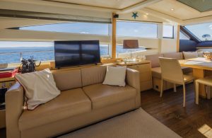 • Twin helm seats with electric adjustment for helmsman