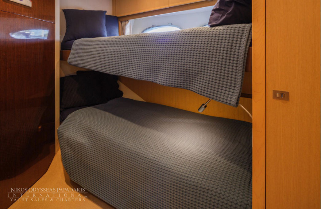 • Two full-size single berths with quilted bedspreads