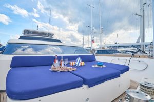 • Flybridge: Features a sunbathing area, large sofa, BBQ, and ample space for entertaining guests