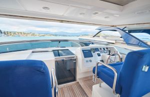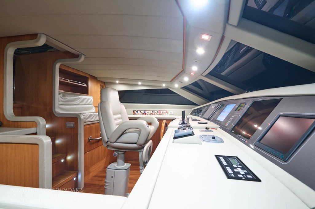 • Helm Area: Located on the forward midship upper deck, the helm provides excellent open views with large forward windows, perfect for navigation.
